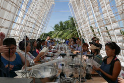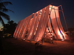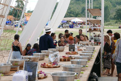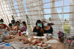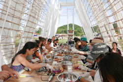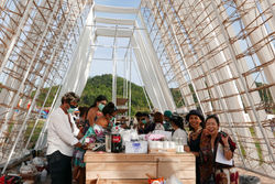 With food being one of the main life forces, knowledge and methods of ingredients preservation and processing are vital for survival in situations of limited resources and shifting conditions. Camp Edible is a base for arrived pioneers to experiment and learn about various creative most ancient ways to work with locally sourced ingredients such as fermentation, aging, food waste, natural aroma and dye, and more. By Bangkok based design team Salt and Pepper Design Studio and led by Chef Black of Blackitch Artisan Kitchen from Chiangmai, the project imagines concepts of human’s innate nature of migration while celebrating the creativity that comes from necessity.